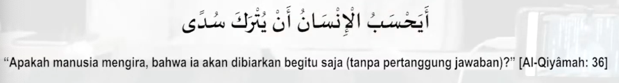 Manusia diciptakan Allah dan diberi rezeki. Allah mengutus Rasul, yang taat akan masuk surga, yang bermaksiat akan masuk neraka.