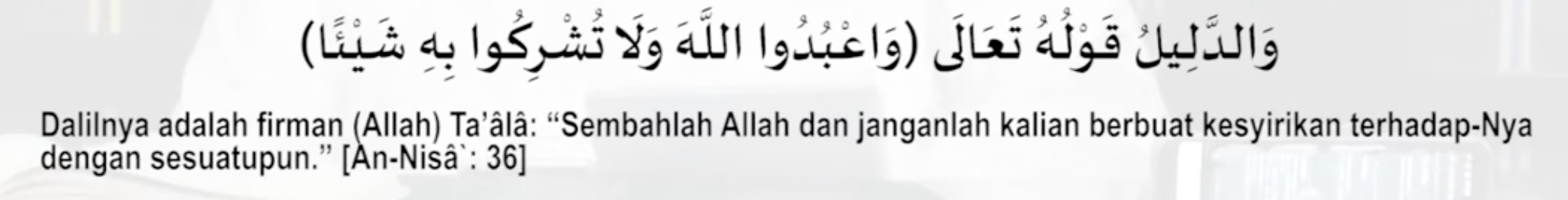 Dalam ayat ini mencakup 10 hak Allah kepada hamba, dimana hak yang pertama adalah beribadah kepada Allah dan tidak berbuat kesyirikan kepada-Nya.
