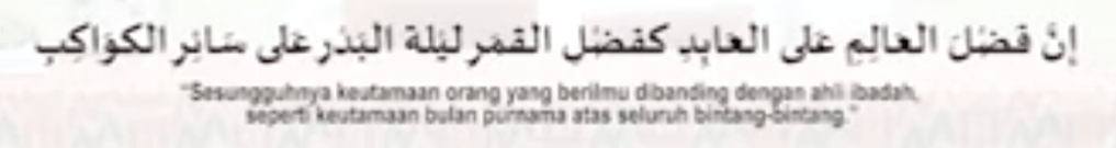 Sesunguhnya keutamaan orang yang berilmu dibandingkan dengan ahli ibadah, seperti keutamaan bulan purnama atas seluruh bintang-bintang