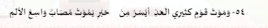 Bait Syair 54: Kematian suatu kaum dan banyak orang, lebih ringan dampaknya … Daripada meninggalnya seorang alim, karena bencana yang diakibatkan akan meluas.Bait Syair 56: Demi Allah, seandainya setan-setan itu mengerti sedikit saja niscaya mereka tidak akan bergembira … Karena kematian ulama termasuk tanda-tanda kiamat mereka