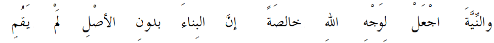 Bait Syair 66: Jadikan niatmu ikhlas untuk mencari keridhaan Allah … Sesungguhnya bangunan tanpa pondasi tidak akan tegak berdiri.
