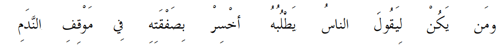 Bait Syair 67: Barangsiapa yang mencari ilmu agar orang-orang menyebutnya … Betapa rugi dia dengan perdagangannya itu kelak di saat hari penyesalan (Kiamat).