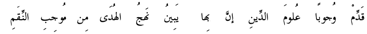 Wajib mendahulukan ilmu-ilmu agama diatas ilmu-ilmu dunia, karena pada ilmu agama itu akan tampak jelas petunjuk dan jalan menuju kepada siksaan.