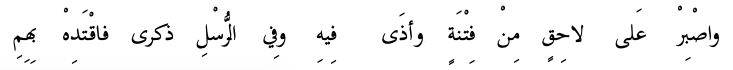 Dalam bait syair 84, dan bersabarlah terhadap akan yang menimpa dari fitnah dan gangguan dalam dakwah (ilmu), pada para rasul ada pelajaran, ambilah petunjuk dari para rasul.