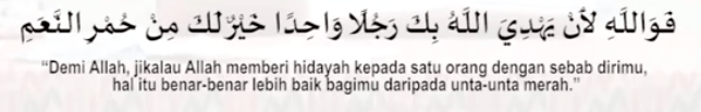 Dalam bait syari 85, satu orang yang Allah beri hidaya kepadanya, disebabkan karena kamu untuk hal tersebut lebih baik di hari kiamat dari pada unta-unta merah.