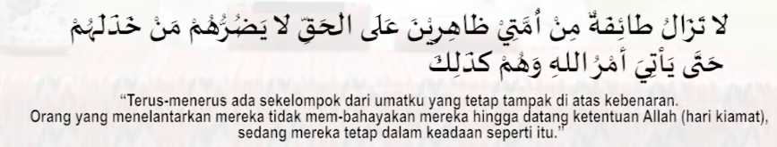 Ketiga kelompok ini akan ada disetiap zama, akan tetapi Alhamdulillah ada yang menjaga agama ini (ahli hadist).