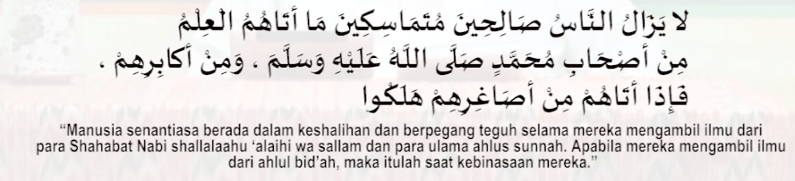 Sehingga mengambil ilmu tidak sembarangan. ada etikanya. Ibnu Sirin Rahimaullah berkata “Sesungguhnya hadist ini adalah agama, lihatlah darimana kalian mengambil agama kalian”. Lafadh lain “Sesunguhnya ilmu itu adalah agama, lihatlah darimana kalian mengambil agama kalian”.