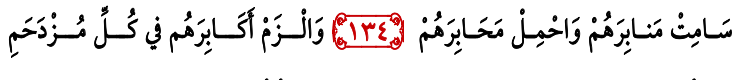 Kamu hendaknya menempuh menarah (tanda/rambu) mereka, dan hendaknya kamu komitment dengan syiar mereka. Hendaknya kamu tambakan dari kendaran-kendaraan mu, letakan (ikatan) mereka, apabila kamu turun ditempat mereka.
