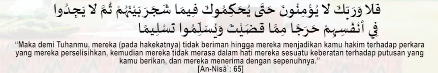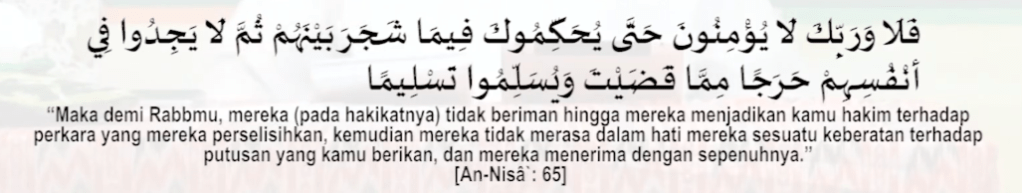 Ayat: “Sekali-kali, demi Rabbmu …” (An-Nisa [4]: 65) merupakan larangan yang paling keras dari perbuatan itu bagi orang-orang yang mau berpikir … Sedangkan orang-orang yang ingkar dan kafir maka telinga mereka tuli