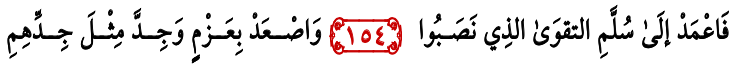 Bait Syair 154: Maka caranya: Kamu menuju pada tangga ketaqwaan yang mereka pasang. Jalan yang kedua: Naik lah kamu dengan penuh semangat, tekad kuat, dengan kesungguhan seperti kesungguhan mereka.