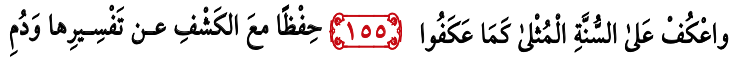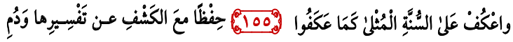 Bait Syair 155: Kemudian yang ketiga: Kosentrasi penuh terhadap sunnah dengan menghafal dan memahami penjelasannya. I’tikaf lah kamu diatas sunnah. Dengan menghafal dan mempelajari tafsir dari sunnah. Dan hendaknya engkau selalu kontinu.