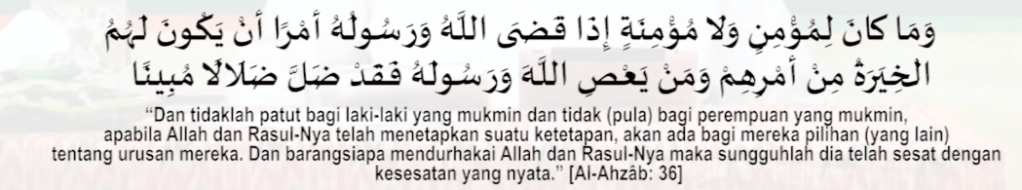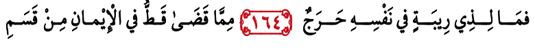 Bagi orang yang memilki keragu-raguan dan di dalam hatinya ada keberatan … Terhadap apa yang beliau tetapkan, maka dia tidak memilki bagian keimanan sama sekali
