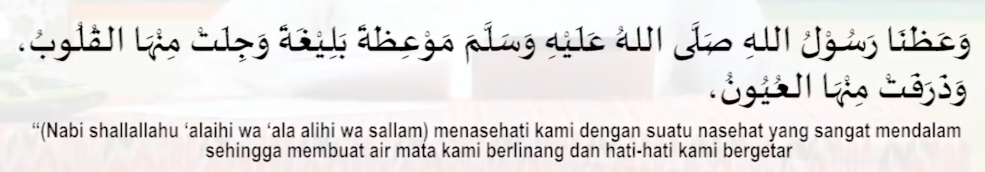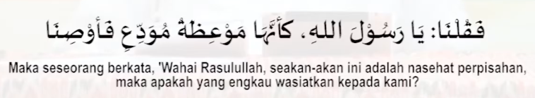Suatu hari Rasulullah menasihati kami dengan nasihat yang sangat mendalam, hati-hati bergetar dan air mata berlinang, mendengar nasihat beliau. Maka para sahabat berkata “Wahai Rasulullah seakan-akan ini adalah nasihat perpisahan, maka bernasihatlah kepada kami”.
