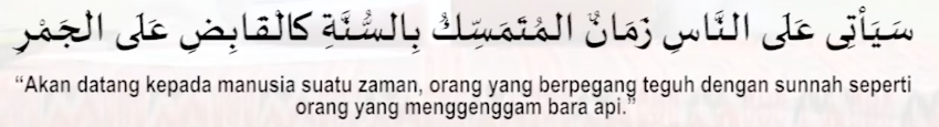 Berpegang dengan sunnah seperti mengenggam bara api. Maksudnya akan ada resiko berpegang dengan sunnah di akhir zaman. Tapi harus bersabar atas hal tersebut.