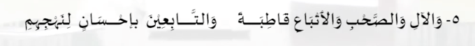 Bait 5: Demikian pula shalawat kepada keluarga beliau (istri-istri Nabi), para sahabat, pengikut sahabat (tabi’in) seluruhnya, demikian pula para tabi’in yang mengikuti manhaj mereka dengan ihsan.