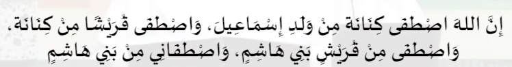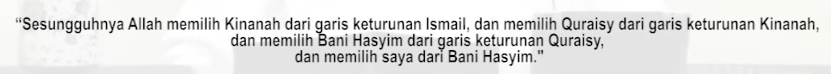 Sesungguhnya Allah telah memilih Kinanah dari anak Ismail, Quraish dipilh dari Kinanah, Bani Hasyim dipilih dari Quraish. Sedangkan Nabi Muhammad shallallahu ‘ailai wasallam terpilih dari Bani Hasyim.