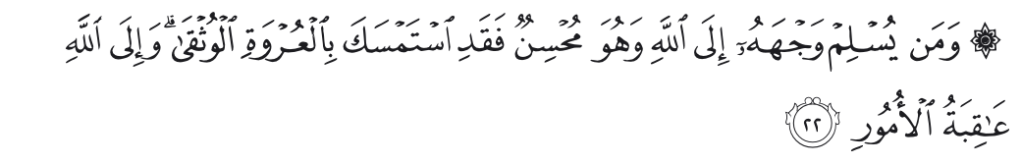 Dalam Al-Quran Surat Luqman Ayat 22: barang siapa yang berserah diri dan seorang yang baik maka dia telah berpegang teguh pada taili yg kuat